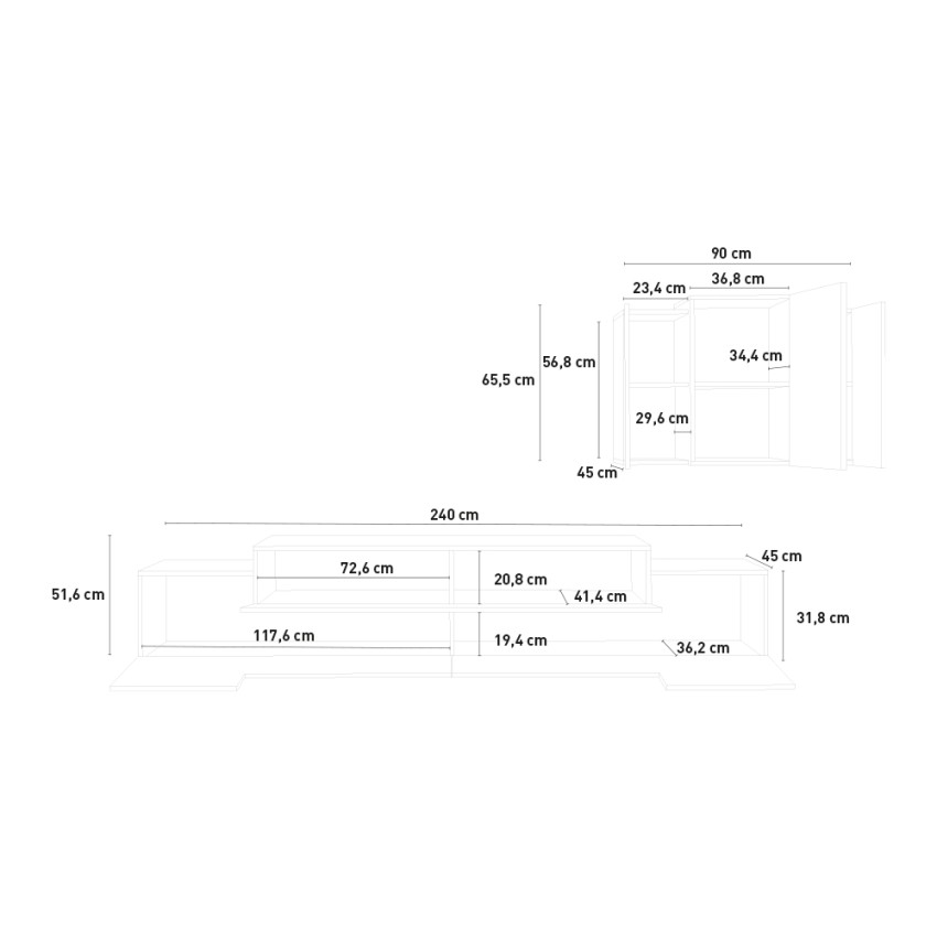 - TV-tason mitat: 240 x 45 x 51,6 cm (leveys, syvyys, korkeus)